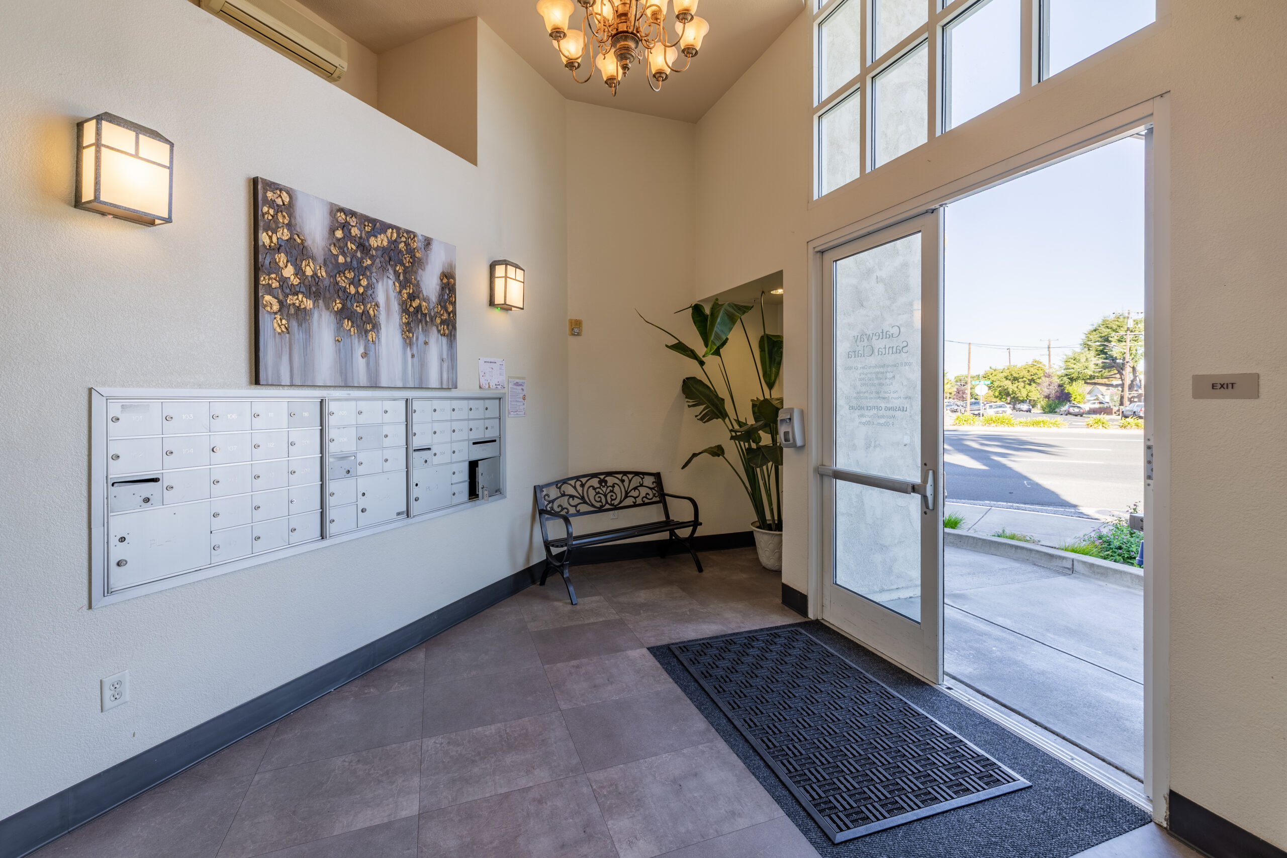 - Inside lobby with mailboxes and sitting area