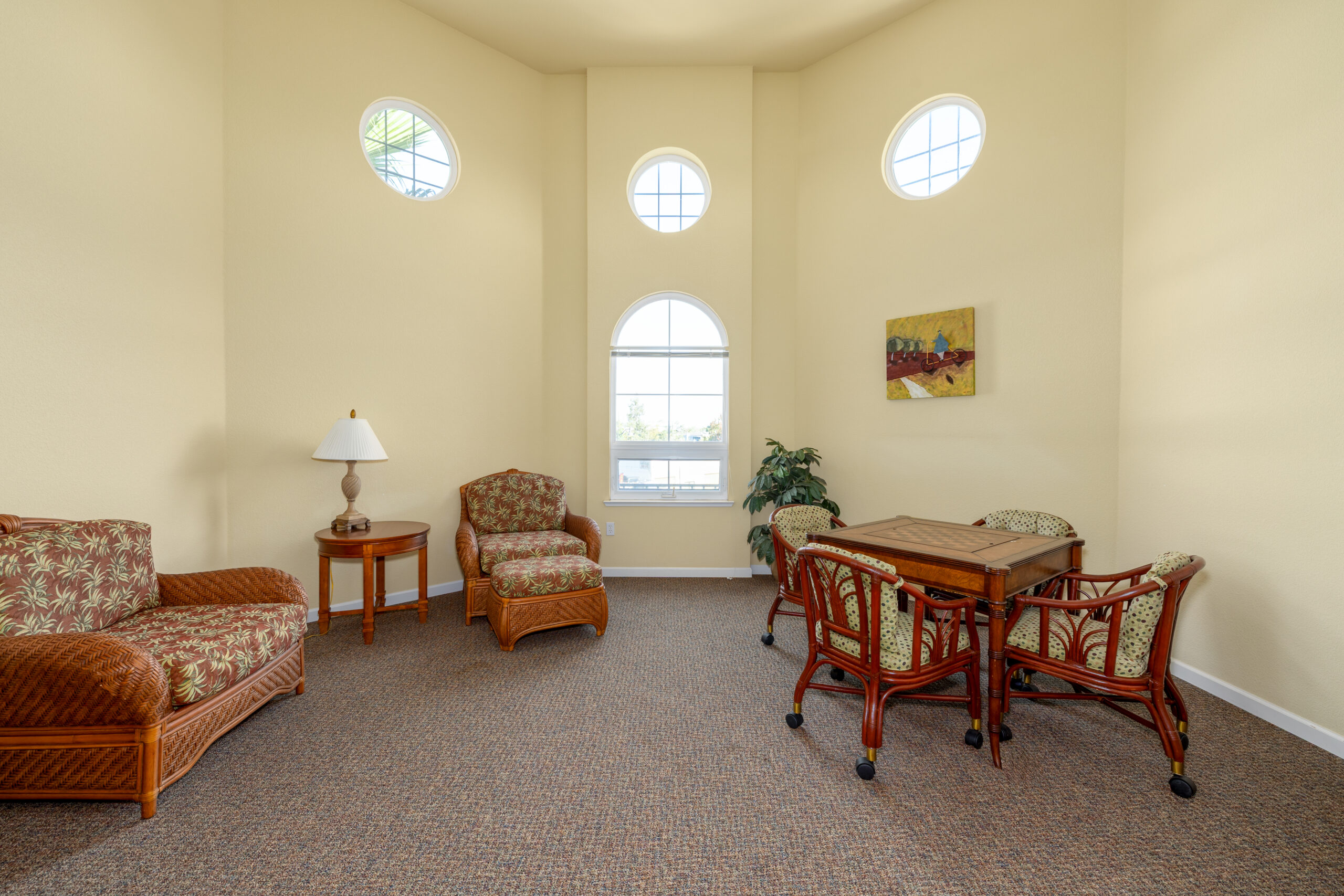 Gateway Santa Clara is a gated community for seniors that features one-bedroom apartment homes with many amenities including private balconies, underground parking, a computer room and a beautiful observatory and library. The property also has an inner courtyard with a large fountain and benches.
