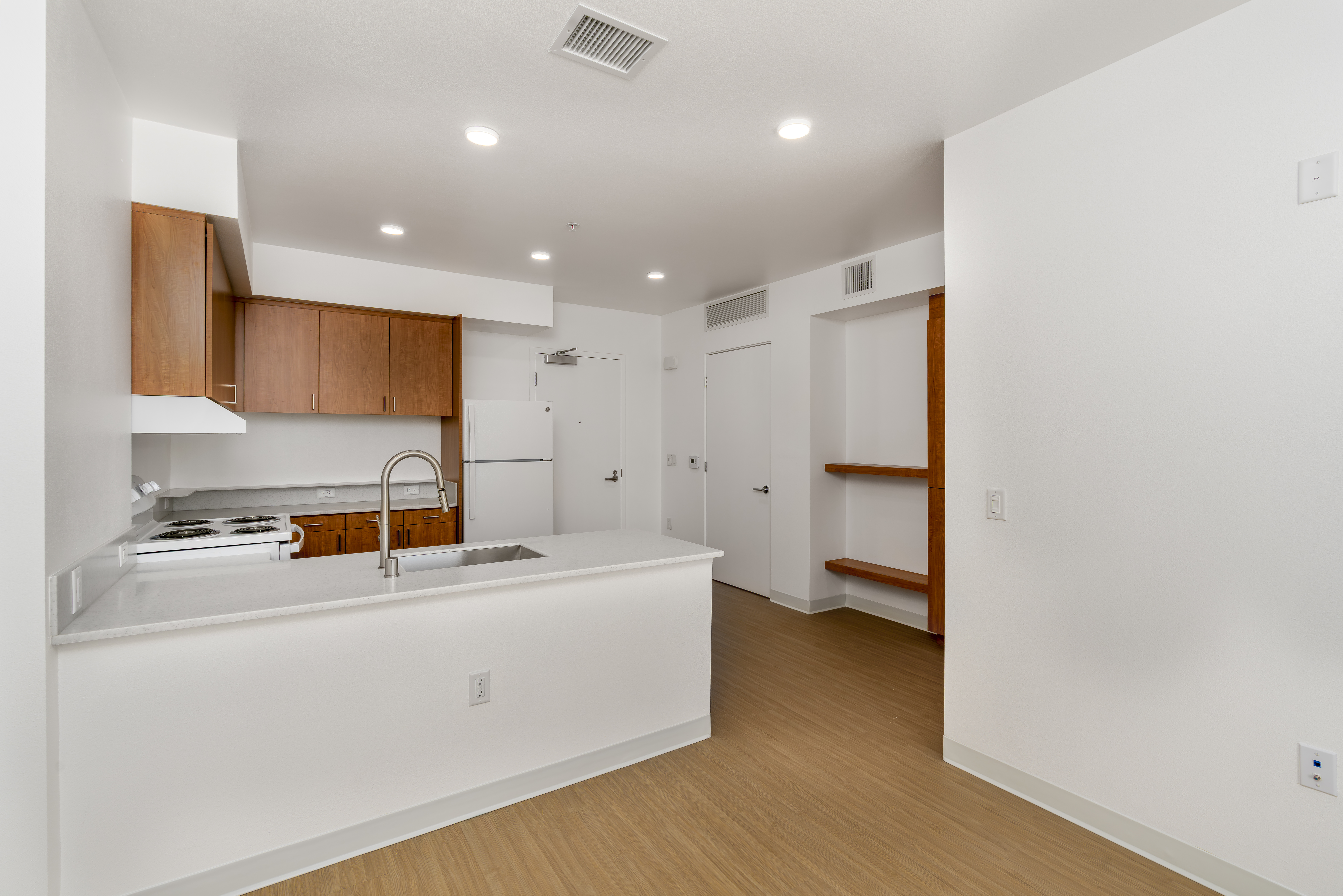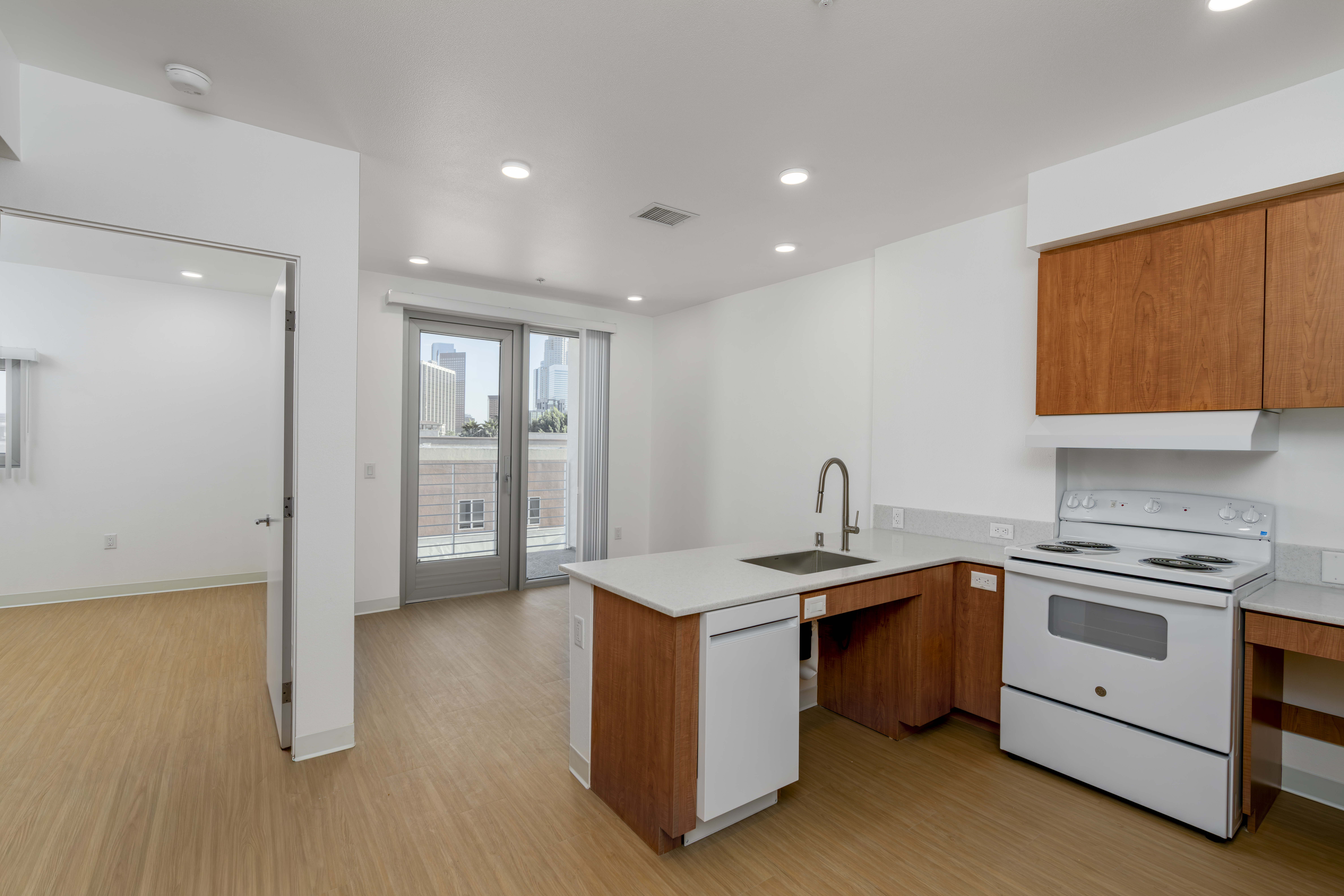 Designed with resident comfort in mind, Miramar Gold features an array of amenities, including a community room with a kitchenette, fitness room, computer room, laundry room, a children’s indoor/outdoor recreation area, a rooftop patio with views of DTLA, and Hollywood, and offices with full-time staff. Each apartment includes air-conditioning, kitchen appliances with a dishwasher, and a private balcony.