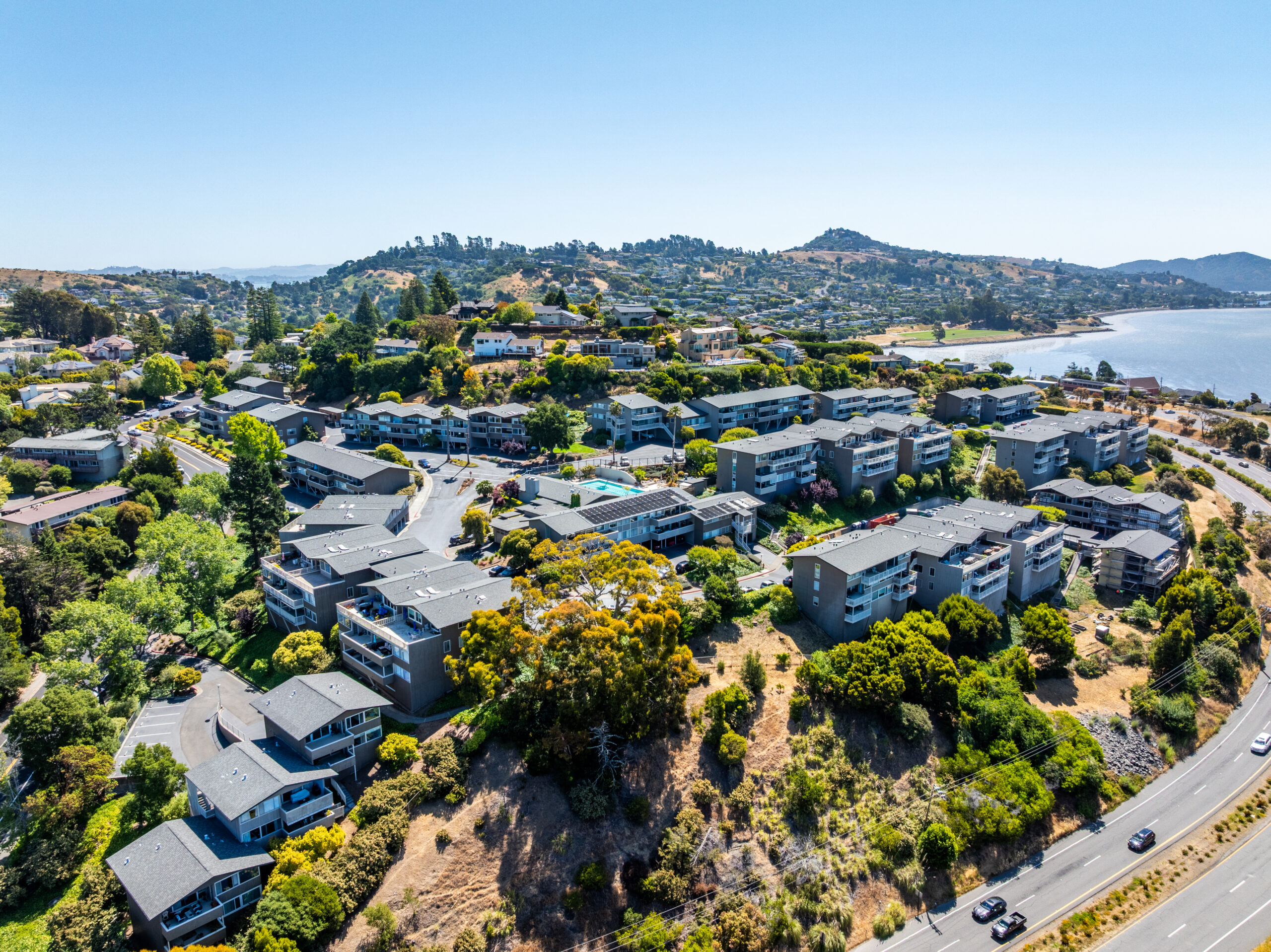Tiburon Hill Estates fosters a welcoming and inclusive environment with robust amenities, including a sparkling outdoor swimming pool, a large recreation clubhouse with a cozy fireplace, covered parking with storage, and on-site laundry facilities. Just minutes from downtown Tiburon’s shops, dining, and waterfront paths, and with easy access to buses and ferries, our community perfectly balances tranquility and accessibility. Discover the charm of this hillside retreat today!